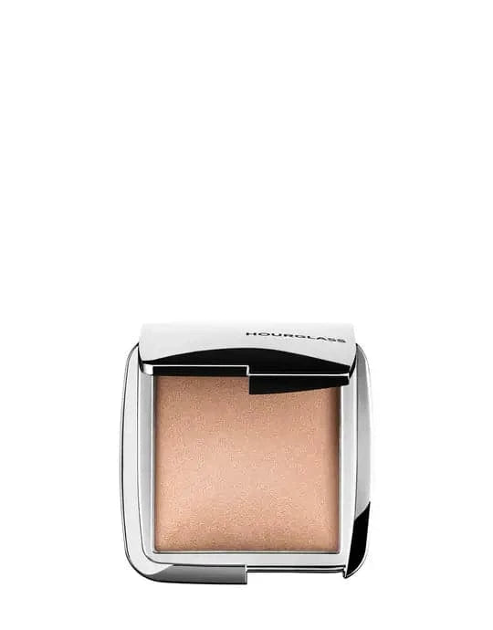A travel-size Ambient® Strobe Lighting Powder—an illuminating strobing powder designed to sculpt the face with light-creating depth and dimension for a refined highlight.