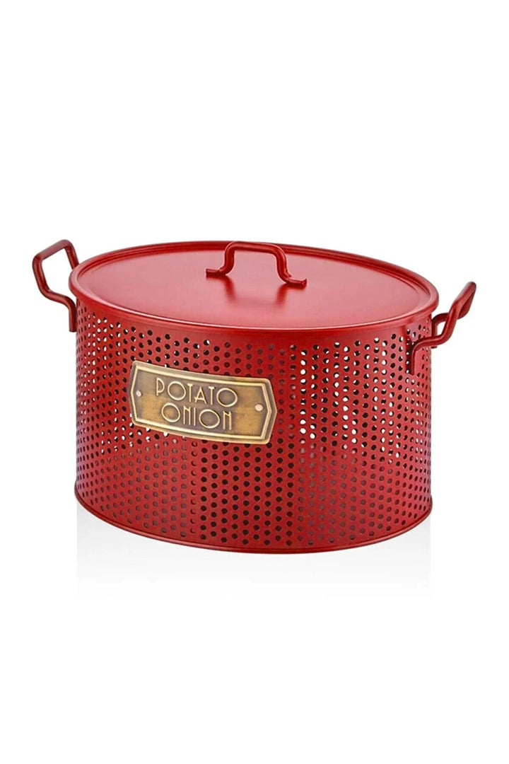 - The Mia Galvanized 24x46cm 2-Piece Potato-Onion Bucket red GLV0661 It has a double chamber inside. It is made of galvanized steel. It has holes against mold. It is suitable for outdoor use and does not rust or stain. Product size is 24(H) x 46(W) 30(D) cm.