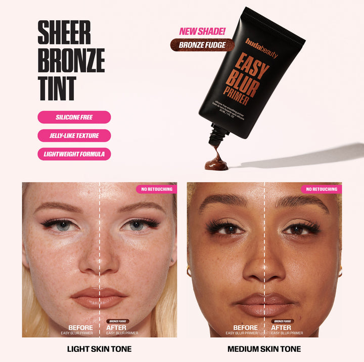 - Step 1: Prime with our OG Easy Blur Primer, or NEW Easy Blur Primer in Bronze Fudge; Huda recommends using two fingers length worth of product.