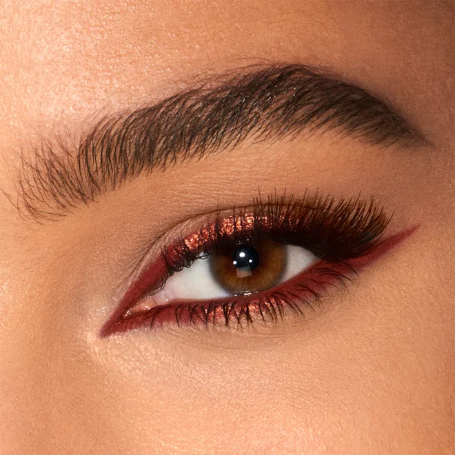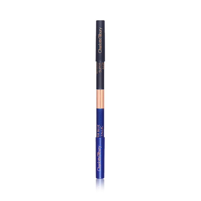 With this magical coloured eyeliner, I’ve used the laws of contrasting colour to create an instant SPARKLE effect to make blue eyes POP! Created to be like a Beauty Light Wand illuminator for the eyes, the matte end defines the eyes, adding shape and depth, whilst the metallic end adds light-play to amplify your colour contrast!