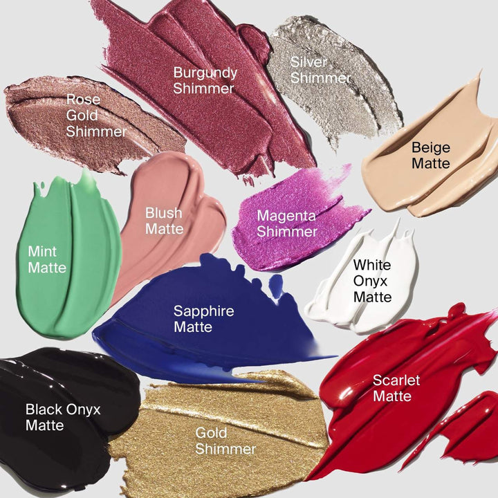 -Sapphire Matte, Flame Matte, Fuchsia Matte, Scarlet Matte, and Magenta Shimmer are not suitable for use on eyes.