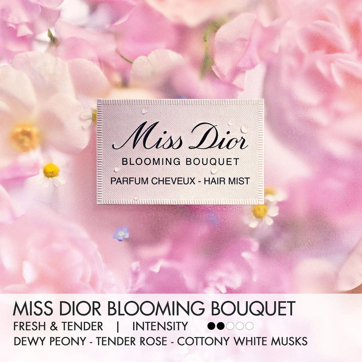 -Spray Miss Dior Blooming Bouquet Hair Mist onto your hair to prolong the trail of your fragrance.