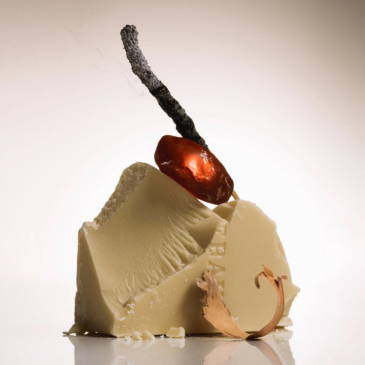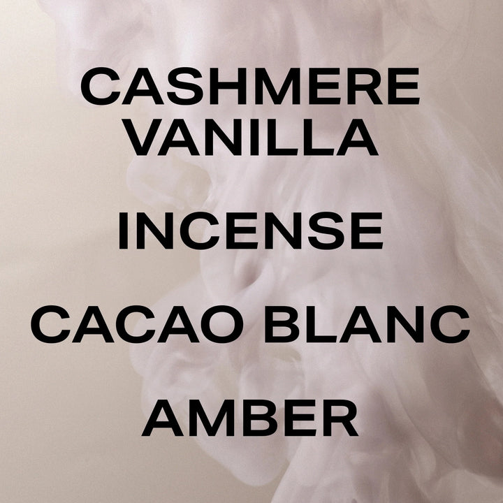 A vanilla with smoldering depth. Beneath resinous swirls of incense, rich aromatic birch kindles against a backdrop of smoky balsam and robust cacao blanc. Golden amber warms to reveal a creamy core of cashmere vanilla.