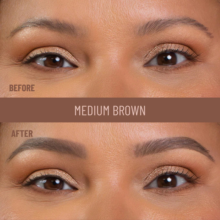 Use the spoolie to brush brow hair upwards into the same direction. To define, use the triangle-shaped tip to gently draw hair-like lines to fill in any sparse areas in the brow. Brush through until you achieve your desired look.