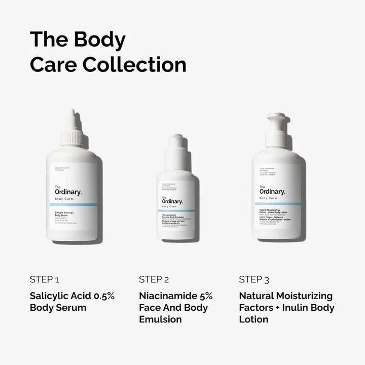 This comprehensive body care collection addresses common skin concerns, including acne, dryness, and uneven tone.