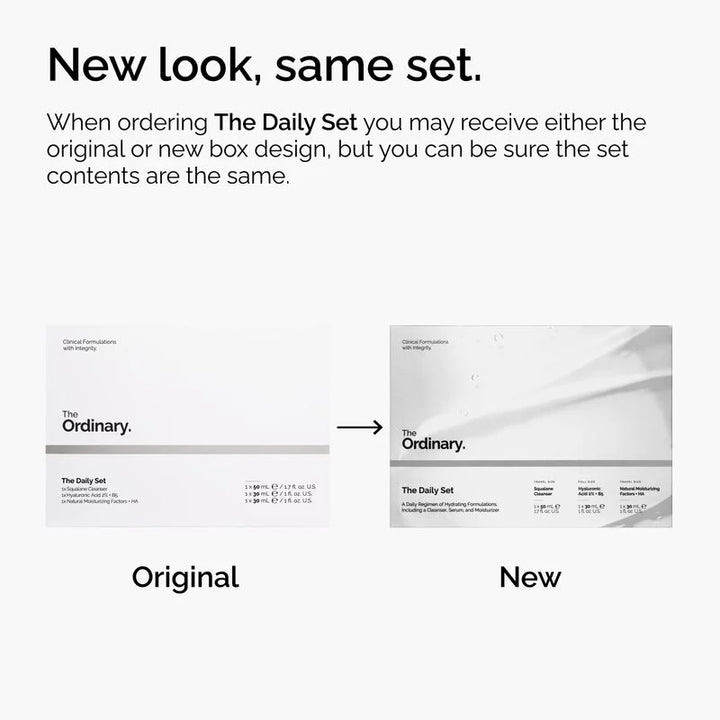 What Else You Need to Know: Give your skin what it needs with the building blocks of a healthy daily routine. The Squalane Cleanser effectively removes makeup and impurities, the Hyaluronic Acid 2% + B5 Hydrating Serum visibly plumps and hydrates, and the Natural Moisturizing Factors + HA reinforces skin's natural hydration barrier.