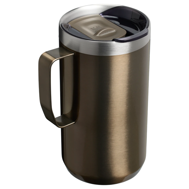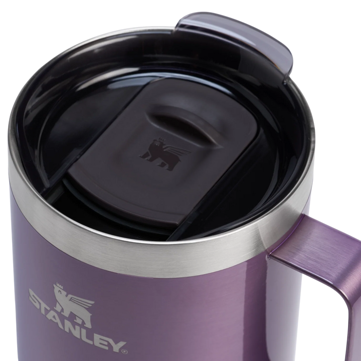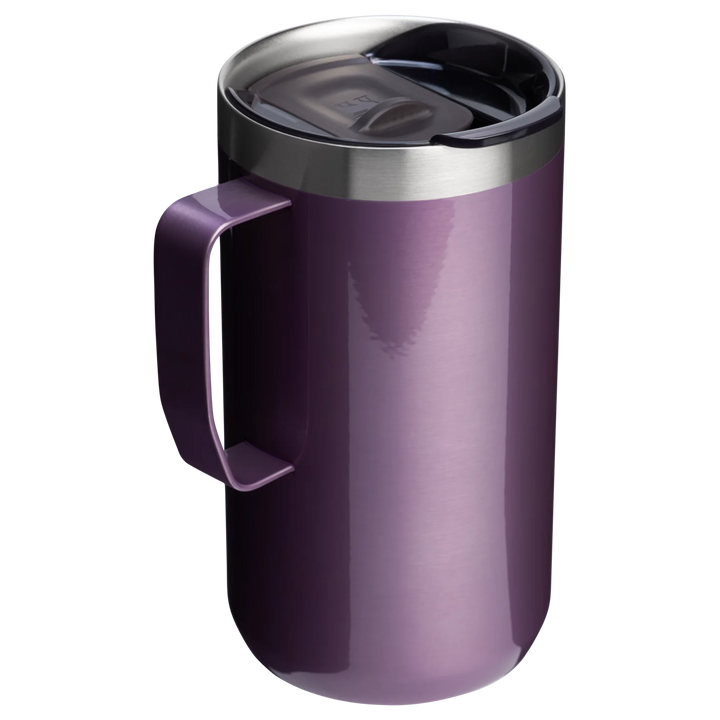 Just the right size for long mornings or anytime you need a fuller cup. The 24 ounce Stay Hot Camp Mug has the legendary performance you expect from a Stanley, with fewer trips to refill. This one is built to last, with solid 18/8 stainless steel construction. Double-wall vacuum insulation keeps your favorite drinks hot for hours, and the secure press-fit Tritan™ Drink-Thru Lid prevents splashes and makes sipping easy. Keep it with you in the backyard, take it on the road, or enjoy it while lounging by the fireside.