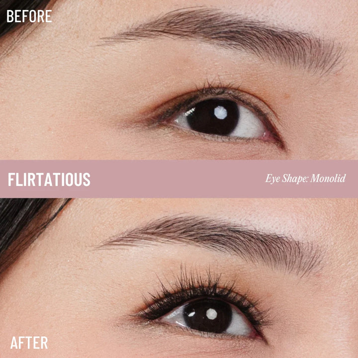 Gently remove lash from the tray using the applicator tool (not included). Align lash cluster with natural lash to confirm placement. To apply, gently squeeze false lash and natural lashes together using the applicator tool and hold until sealed. To remove, gently lift them from the natural lash line using clean hands. Lasts up to five days.